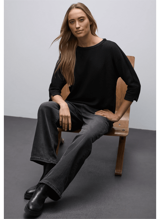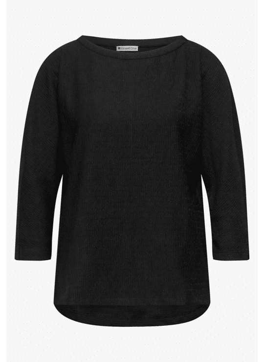 Dit Street One shirt voor dames met lange mouwen heeft een glitterlook en een modieuze boothals. De afgeronde zoom geeft het Shirt een vrouwelijke touch - ideaal voor speciale gelegenheden of stijlvolle alledaagse looks.