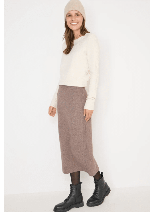 Deze gebreide midirok van CECIL voor dames heeft een elastische geribde tailleband en fijne structuurstrepen aan de zijkanten. Een split aan de achterkant zorgt voor meer bewegingsvrijheid en benadrukt de vrouwelijke look. De zachte stof maakt het de perfecte metgezel voor comfortabele alledaagse stijlen.