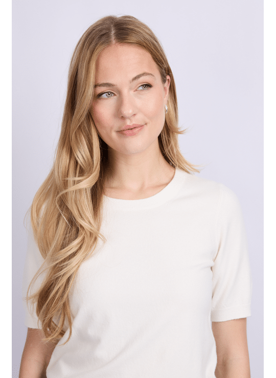 De Kenza top is een elegante basic die in elke garderobe thuishoort. Het ontwerp heeft een subtiele ronde hals en halflange mouwen, wat zorgt voor een tijdloze en vrouwelijke uitstraling. De zachte, fijngebreide stof biedt optimaal draagcomfort en valt mooi om het lichaam. Perfect te combineren met een blazer of high waist broek voor een verfijnde, moderne look.